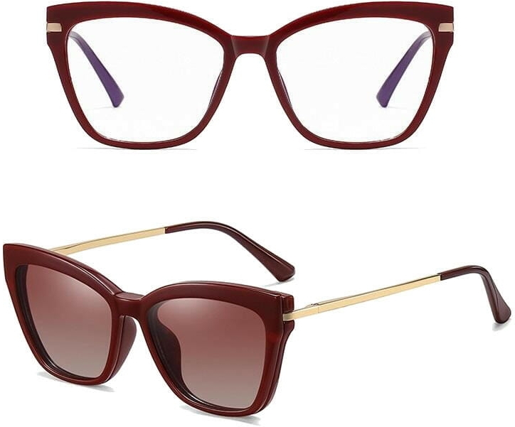 Damskie bordowe okulary do komputera z nakładką przeciwsłoneczną Clip-on 25116A