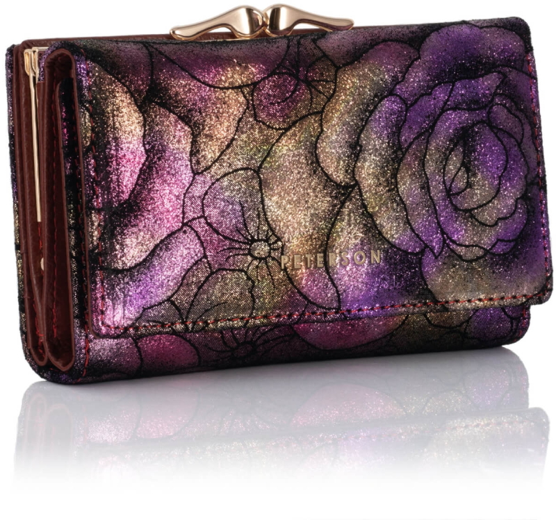 Zgrabny portfel damski w kwiaty PETERSON 42108 – fioletowy