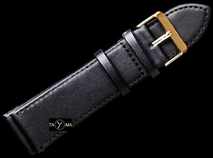 Pasek skórzany do zegarka – 26mm czarny + złota klamerka + białe przeszycia