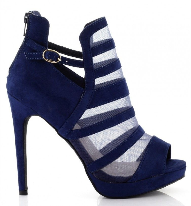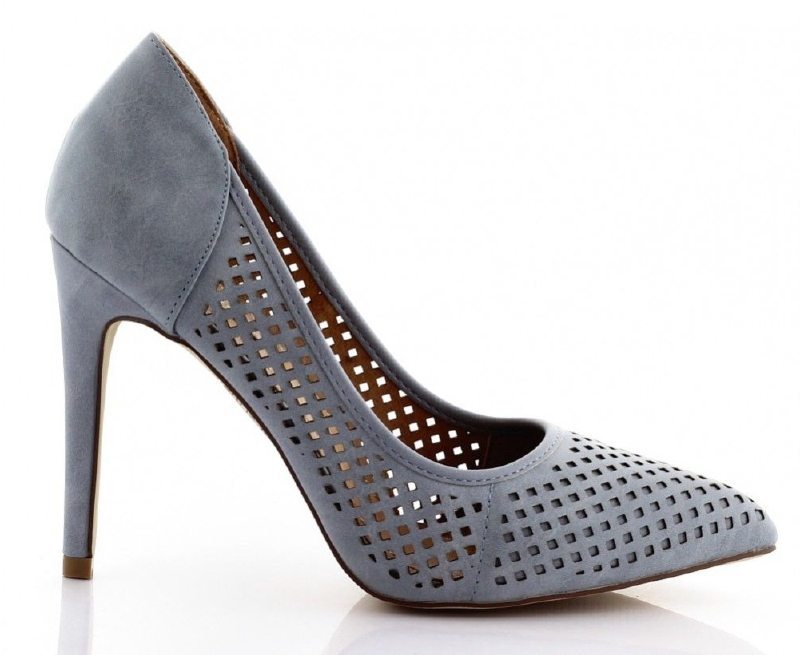 Niebieskie szpilki – laser cut siateczka – czółenka C-6