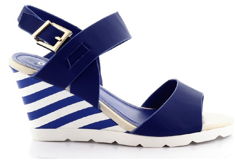 Niebieskie sandały w paski na koturnie S-12