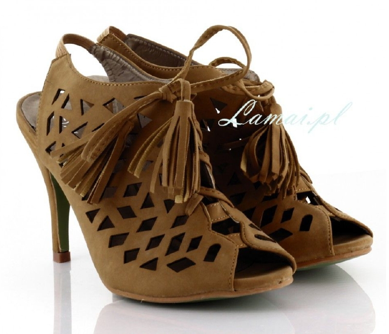 Szpilki boho ażurowe z frędzlami botki CAMEL B-17