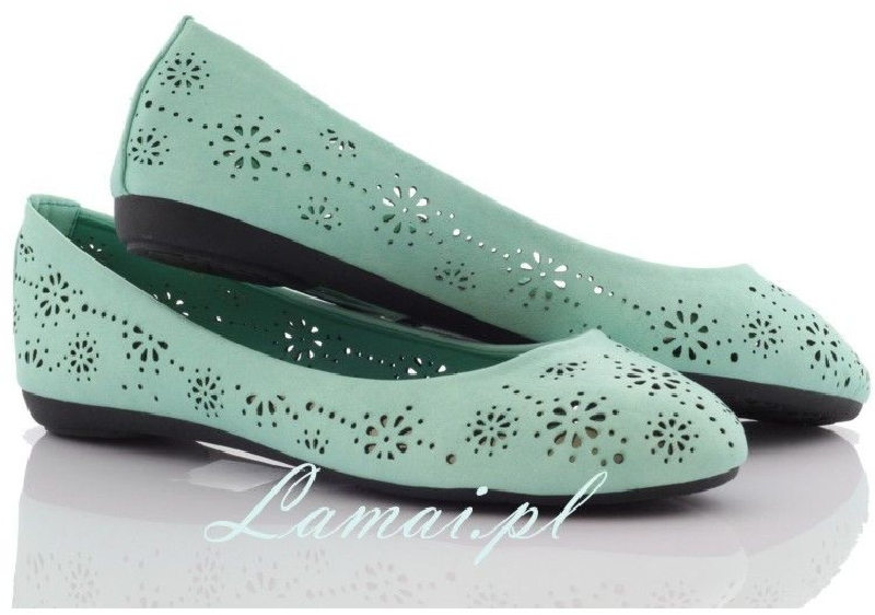 Baletki, balerinki miętowe żakardowe A338