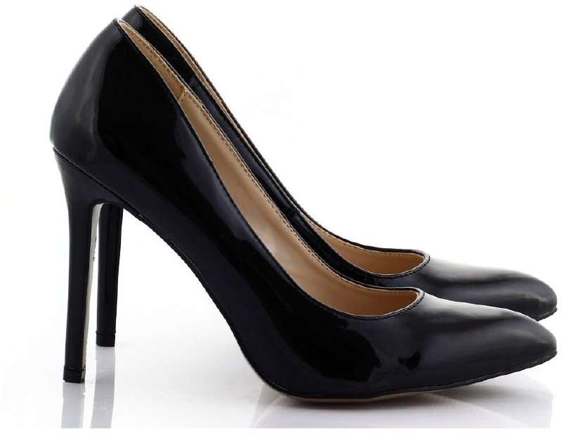 Czarne szpilki lakierowane – czółenka w szpic C-8