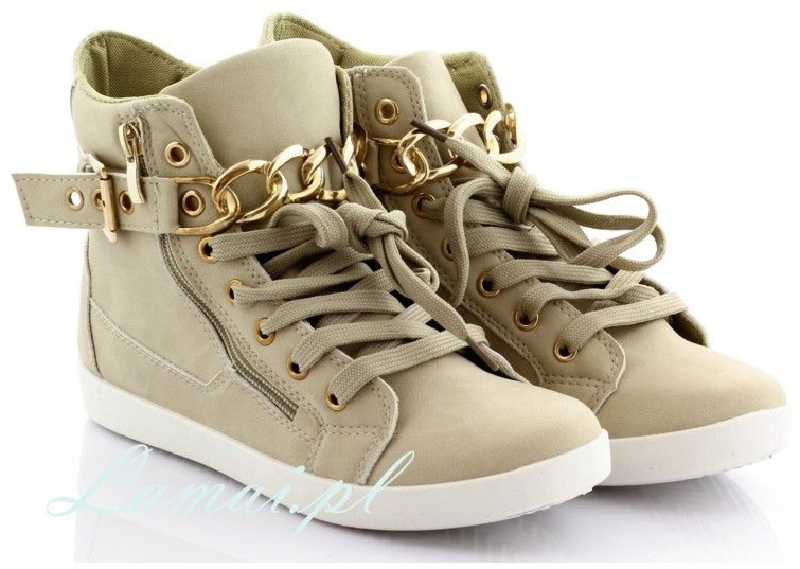 Łańcuchy trampki damskie za kostkę cieliste złoty ŁAŃCUCH