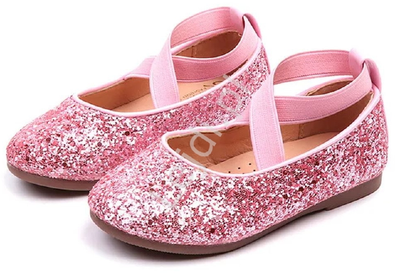 Brokatowe buty dla dziewczynki, błyszczące dziecięce baleriny w różowym kolorze 251