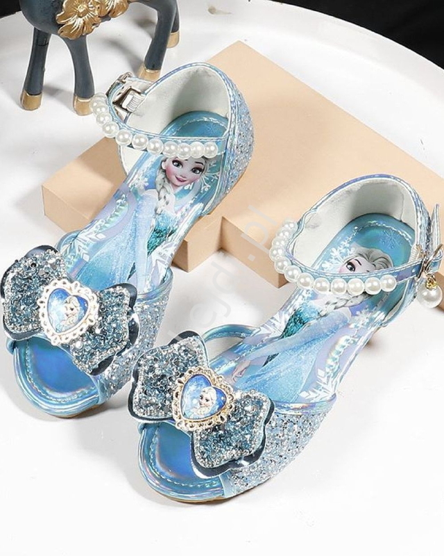 Brokatowe niebieskie sandałki z kokardą Frozen, Kraina Lodu, Elza 306