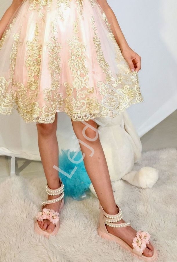 Jasno różowe buty z perełkami , sandałki dla dziewczynki z kwiatkami