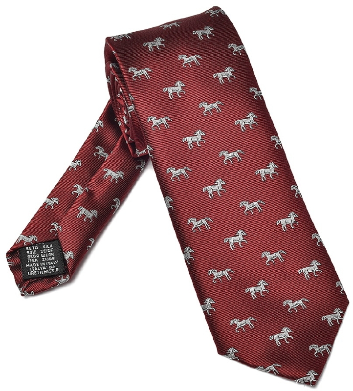 Bordowy jedwabny krawat w konie