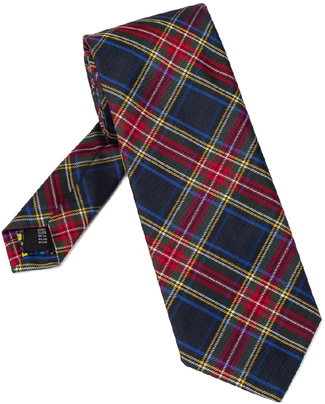 Granatowy krawat jedwabny w czerwona szkocką kratkę VAN THORN
