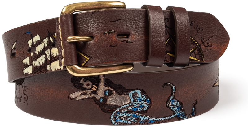 Pasek męski skórzany z wzorem Marine Tattoo brązowy 110