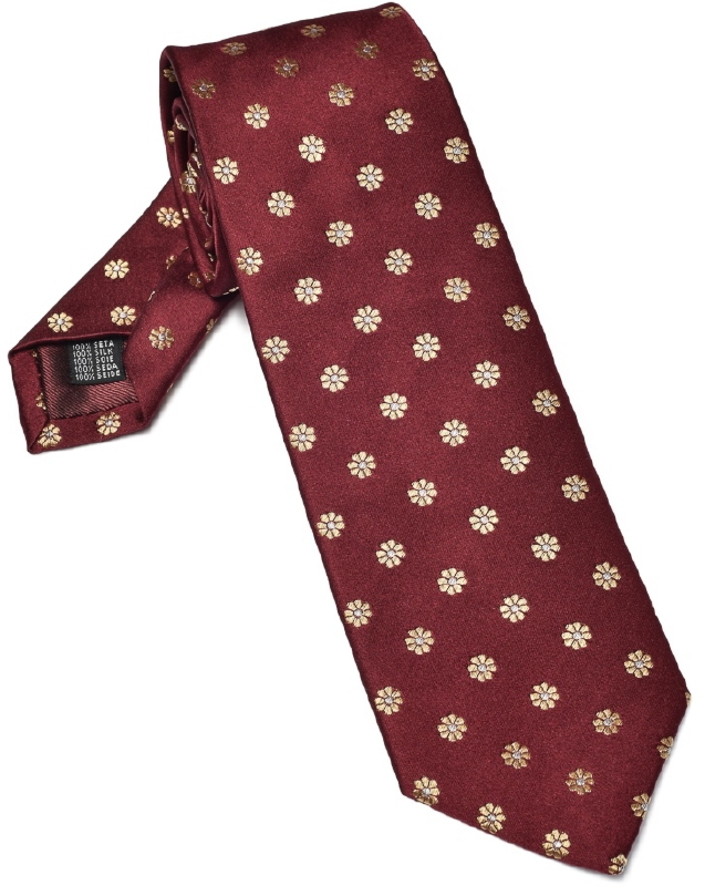 Bordowy krawat jedwabny w żółte kwiatki