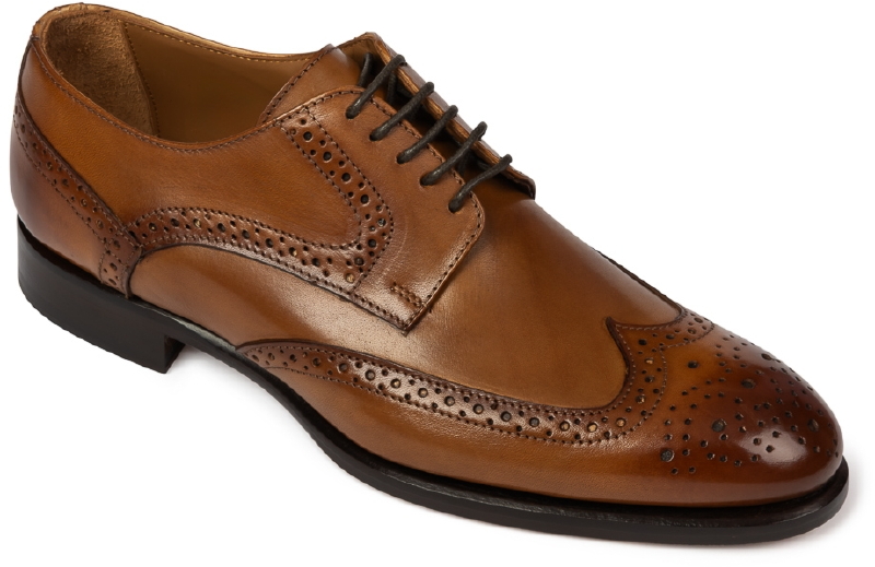 Jasnobrązowe brogsy męskie Van Thorn – skórzane, ręcznie wykańczane 43