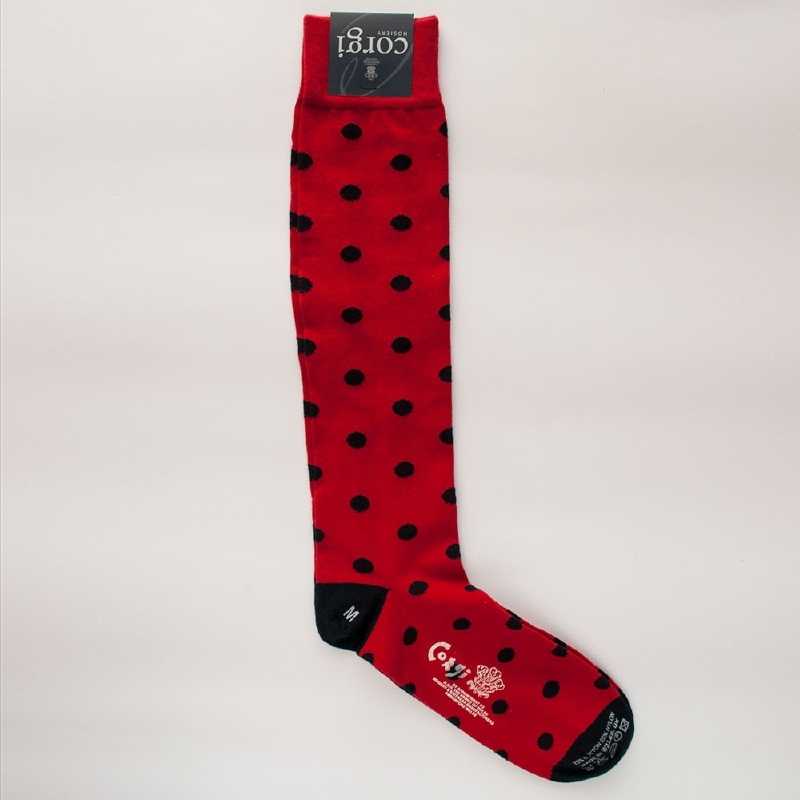 Skarpety podkolanówki czerwone w granatowe grochy M