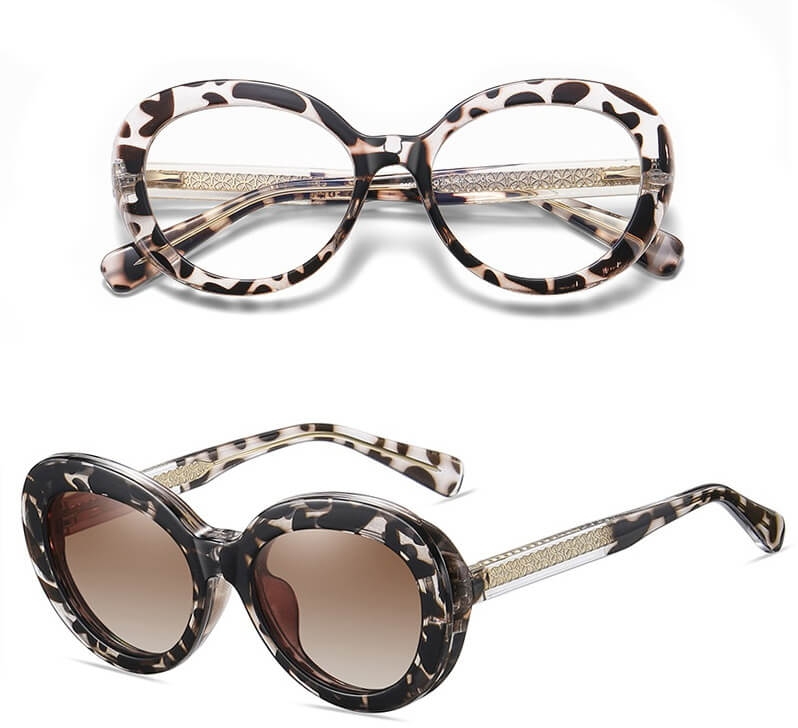 2w1 Okulary damskie do komputera + nakładka przeciwsłoneczna na magnes Clip-On 25174D panterkowe