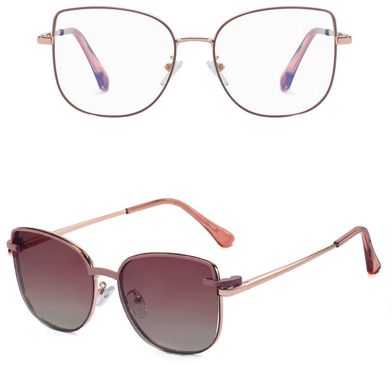 2w1 Okulary damskie do komputera + nakładka przeciwsłoneczna na magnes Clip-On 25162E brudny róż/złoty