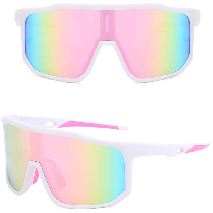 Sportowe okulary przeciwsłoneczne lustrzane STS-02D biały/róż ze skazą!