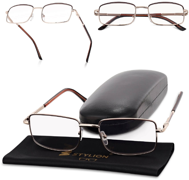 Plusy +1.50 Fotochromowe korekcyjne okulary do czytania z flexami ST334 złoty/brąz ze skazą