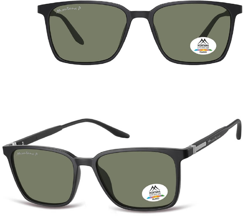 Czarne prostokątne okulary przeciwsłoneczne z polaryzacją z flexami MP186B