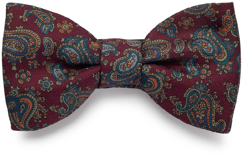 Elegancka mucha wiązana bordowa wzór paisley