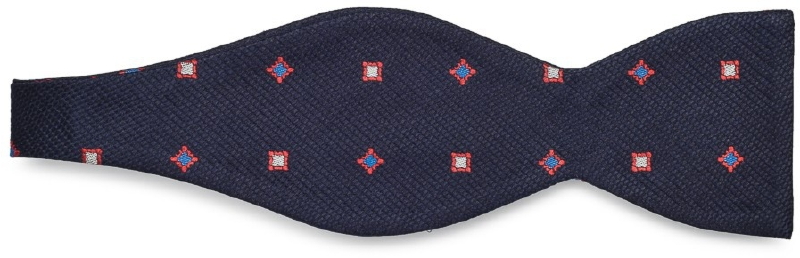 Granatowa jedwabna wiązana mucha w kwadraty VAN THORN 6cm