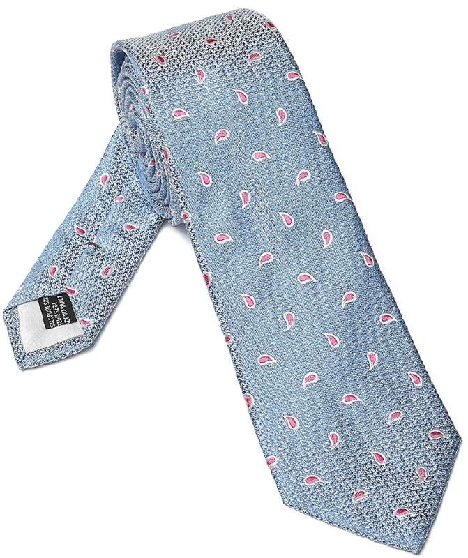 Elegancki błękitny krawat Van Thorn w różowe paisley