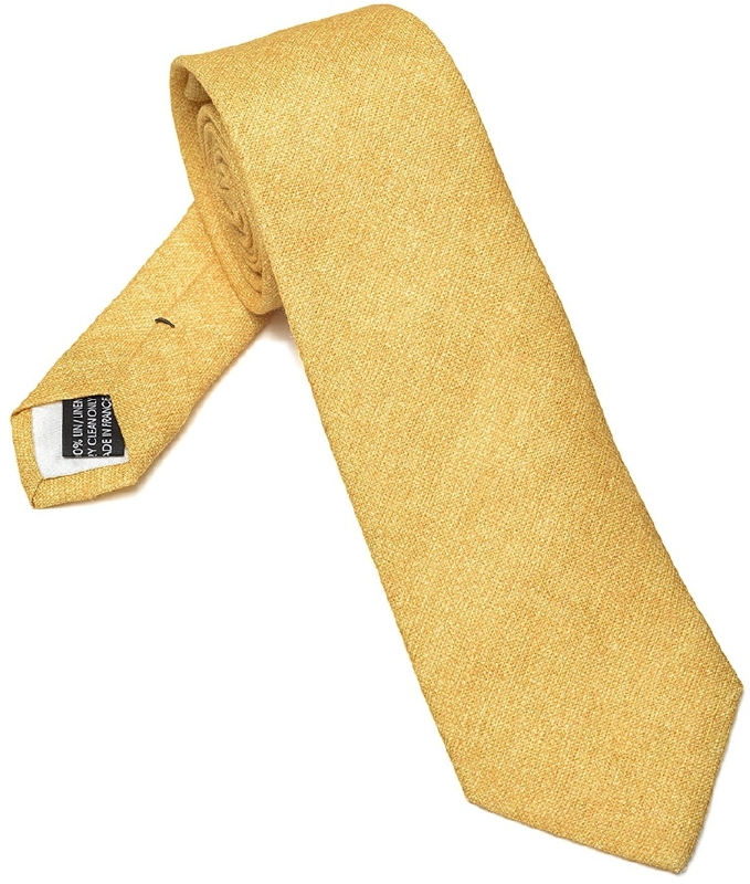 Elegancki żółty pastelowy lniany krawat Van Thorn