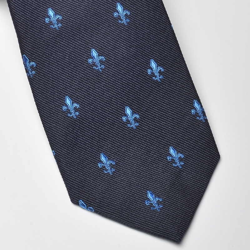 Elegancki granatowy krawat jedwabny Ascot w niebieskie lilijki