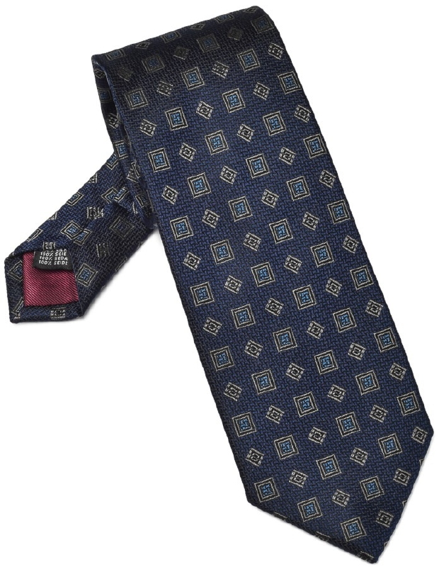 Elegancki granatowo beżowy jedwabny Profuomo kwiaty