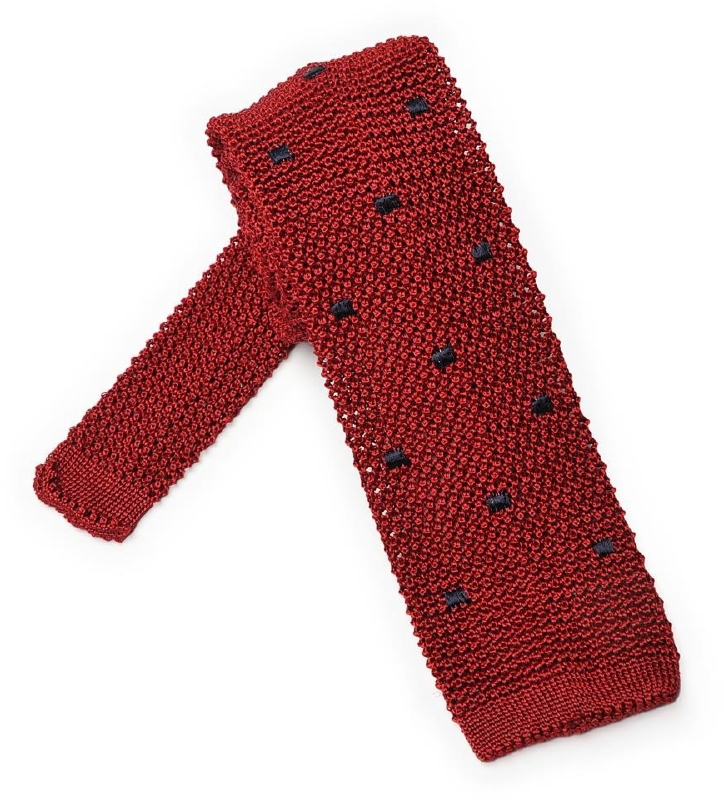 Czerwony krawat knit w granatowe kwadraty