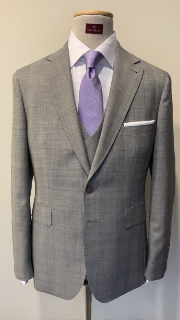 Szary garnitur w kratę – zestaw