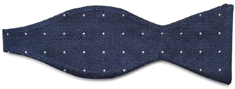 Granatowa jedwabna wiązana mucha VAN THORN w białe kropki