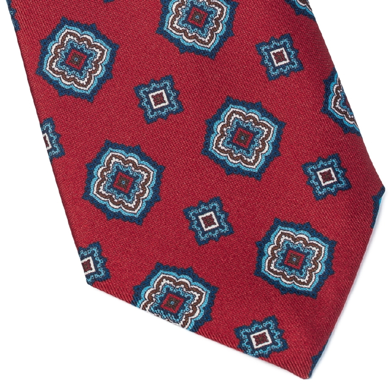 Czerwony krawat jedwabny wzór rozeta VAN THORN