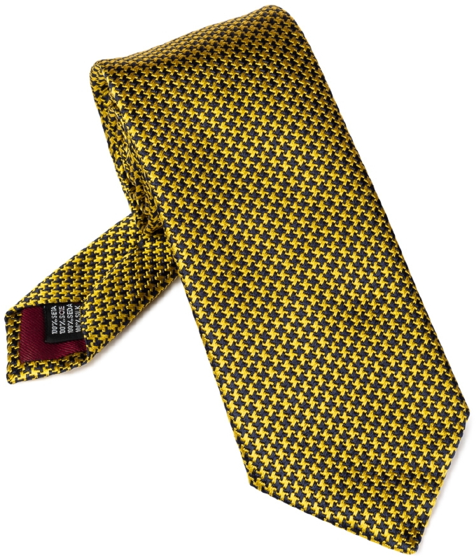 Krawat jedwabny pepitka żółto-czarna VAN THORN