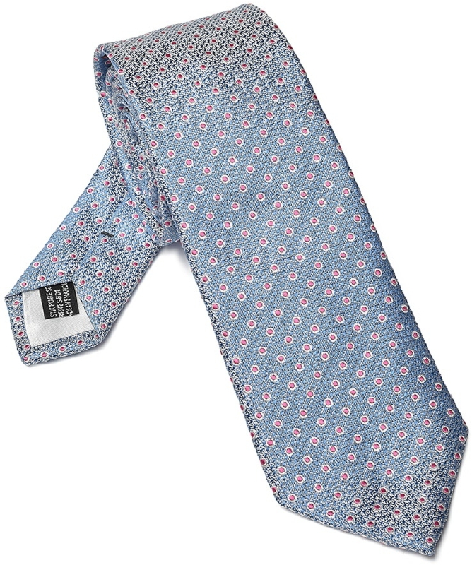 Elegancki DŁUGI błękitny krawat Van Thorn w różowe kropki