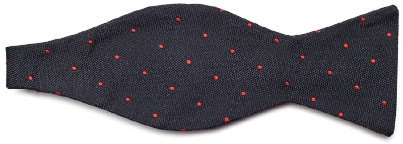 Elegancka granatowa mucha wiązana w czerwone kropki
