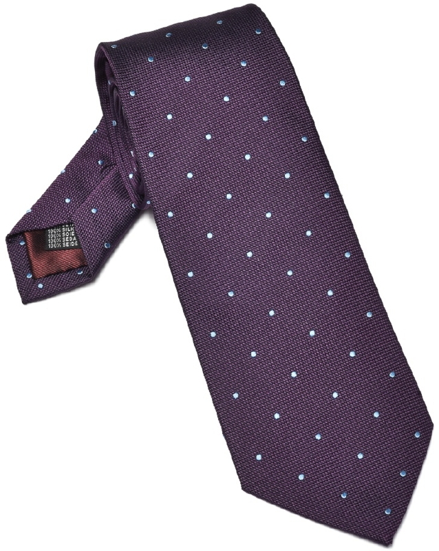 Fioletowy jedwabny krawat w błękitne kropki