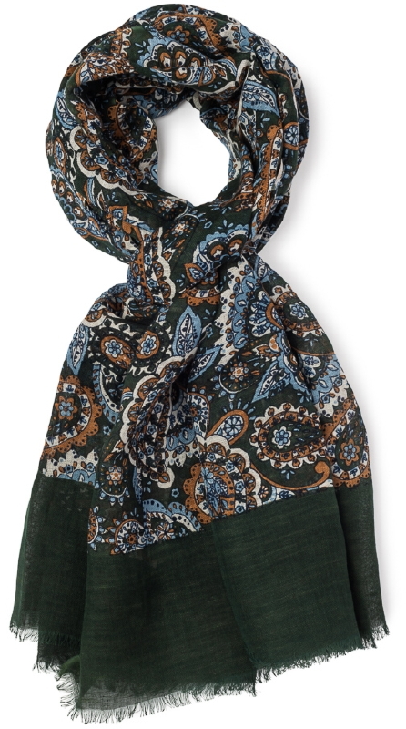 Szal len-bawełna zielony paisley VAN THORN