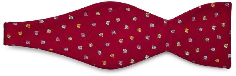 Elegancki czerwony krawat Profuomo w białe i granatowe kropki