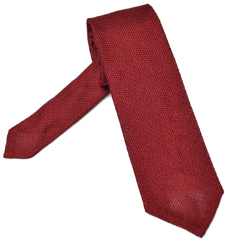 Elegancki czerwony krawat z grenadyny o drobnym splocie bez podszewki