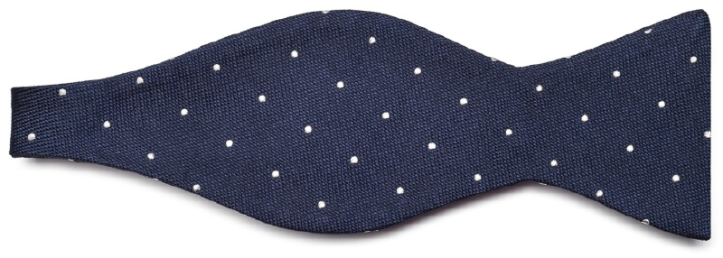 Elegancka granatowa mucha wiązana w białe kropki
