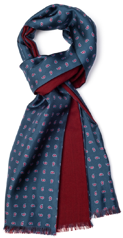Granatowy szal wełniano-jedwabny dwustronny w bordowy paisley VAN THORN