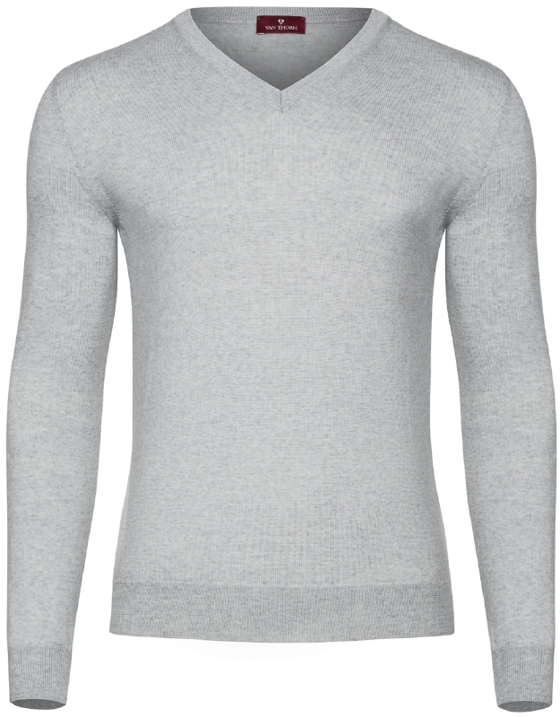 Jasnoszary sweter męski z wełny merino w serek XL