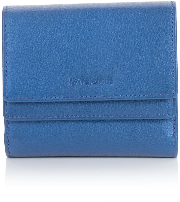 Mały skórzany portfel damski Valentini Metallic 123M-503 – niebieski