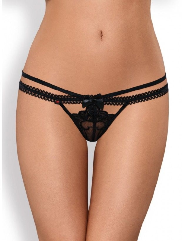 846-THO-1 czarne stringi z koronki Obsessive