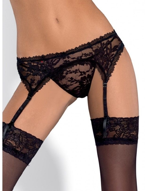 853-GAR-1 pas do pończoch i stringi Obsessive czarna koronka i beżowe podszycie