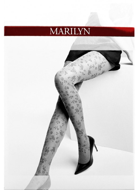 Emmy N06 MARILYN szare rajstopy w kwiaty