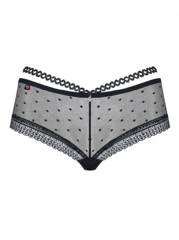876-SHO-1 czarne, prześwitujące szorty w kropki Obsessive