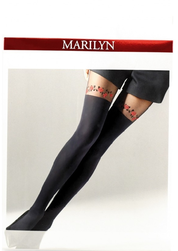 Zazu P08 MARILYN rajstopy jak zakolanówki z czerwonymi różami