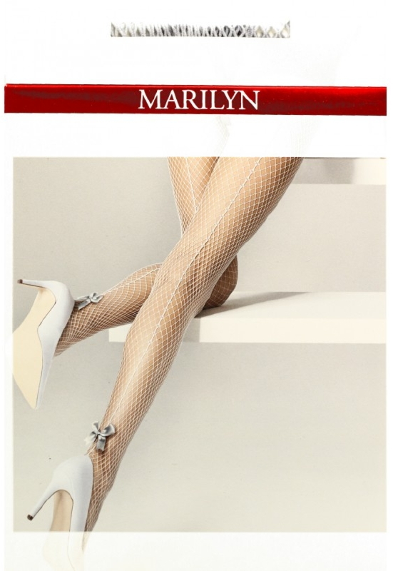 Charly P32 MARILYN szare rajstopy kabaretki z kokardką i szwem